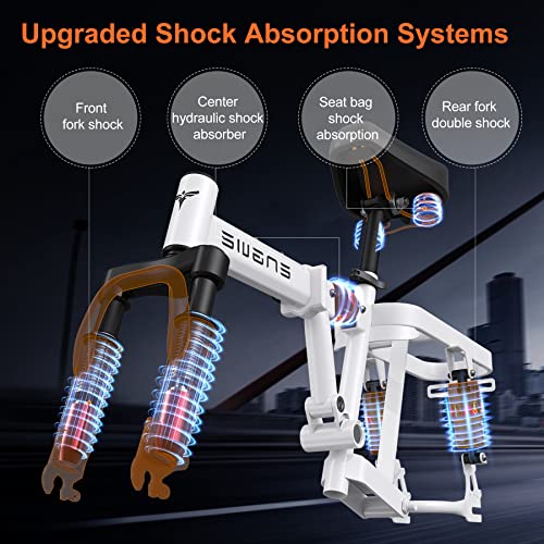 - 【Multiple Shock Absorption】 The ENGWE T14 electric bicycle features a multi-shock absorption system, including the front fork, center, rear wheel, and saddle. This, coupled with its ergonomic design, provides a comfortable riding experience on all types of terrain and ensures a delightful ride.