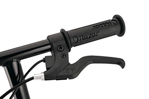 Details: Hop on the Razor E100 Glow that shines like a bolt of blue lighting! Designed for riders age 8 and up, the E100 Glow Electric scooter features a kick-to-start, 100-watt motor that provides speeds up to 10 mph (16 km/h) just enough to thrill younger riders. Its simple twist-grip acceleration control and hand-operated brake help kids take confident control of their ride. The 8" (200 mm) pneumatic front tire provides ample cushion to smooth out rough surfaces. With the LEDs on the deck that light up when throttle is twisted, the Razor E100 Glow electric scooter offers up to 40 minutes of fun, glowing, electric-powered ride time. Glow wherever you go, with the Razor E100 Glow!